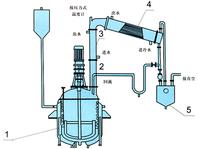 ![]() 1、反应锅 2、竖式分馏柱 3、竖式冷凝器 4、卧式冷凝器 |